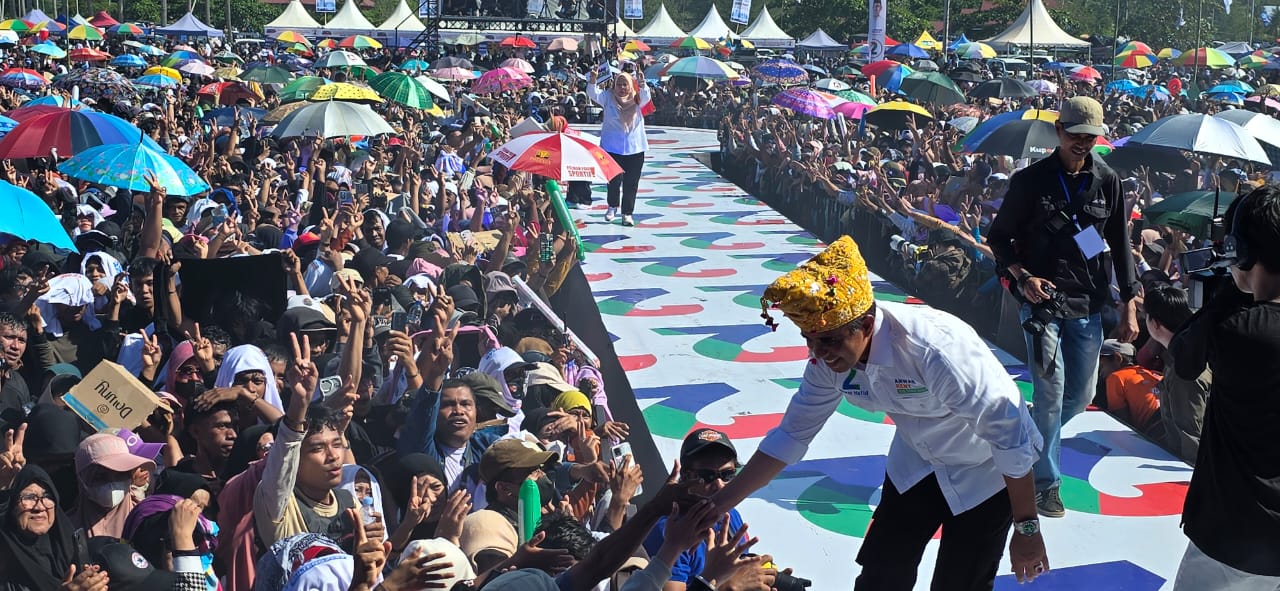 PosRakyat – Sekitar 20 ribu massa memadati kampanye akbar pasangan calon Gubernur dan Wakil Gubernur Sulawesi Tengah 2024, Dr. Anwar Hafid, M.Si, dan dr. Reny A. Lamadjido, Sp.PK, M.Kes, di ex Sail Tomini, Kayu Bura, Kabupaten Parigi Moutong, Sabtu (23/11/2024).