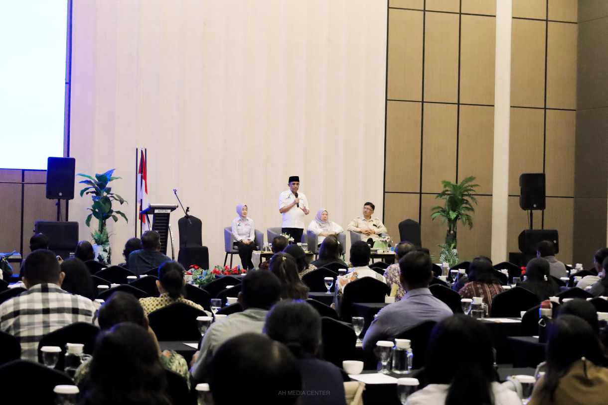 Pasangan Cagub – Cawagub Sulteng, Anwar – Reny, memaparkan visi misi dihadapan ratusan pendeta GBI se Sulteng di Hotel Aston Palu, Selasa (5/11/2024). FOTO: IST