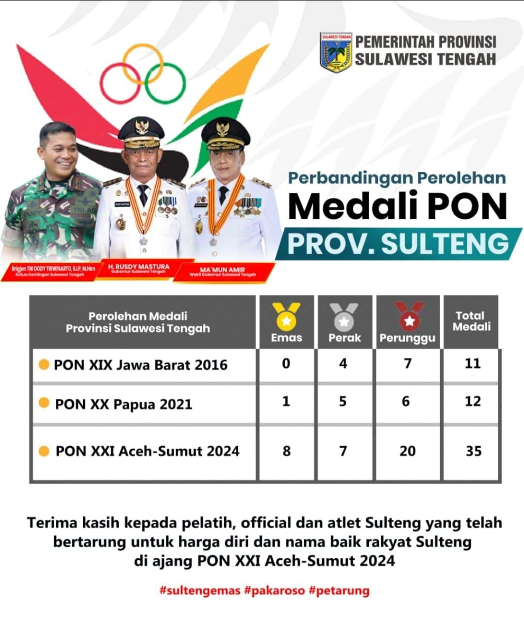 Adalah Hasil PON XXI Aceh -Sumatera Utara. Sejak persiapan hingga keberangkatan para Tadulako membawa semangat perjuangan sportifitas penuh dinamika. Memang sangat dramatis. Penuh intrik. Penuh sorotan. Bahkan desakan politis. Tapi semua gelombang besar hanya ditaklukan oleh pelaut yang ulung di lautan samudera.
