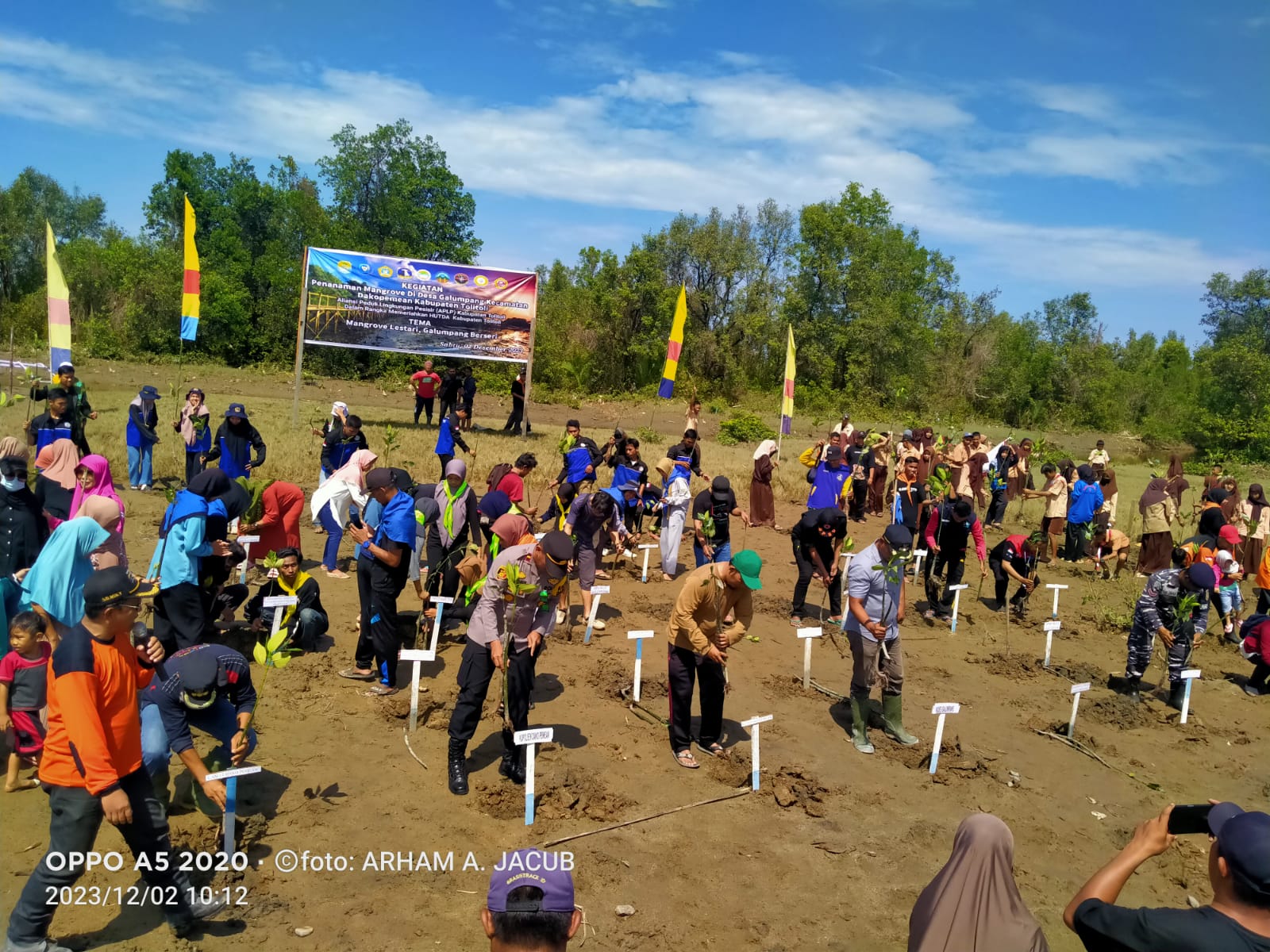 Penanaman mangrove di pesisir Pantai Desa Galumpang pada Sabtu pagi, 2 Desember 2023. Foto: Ist