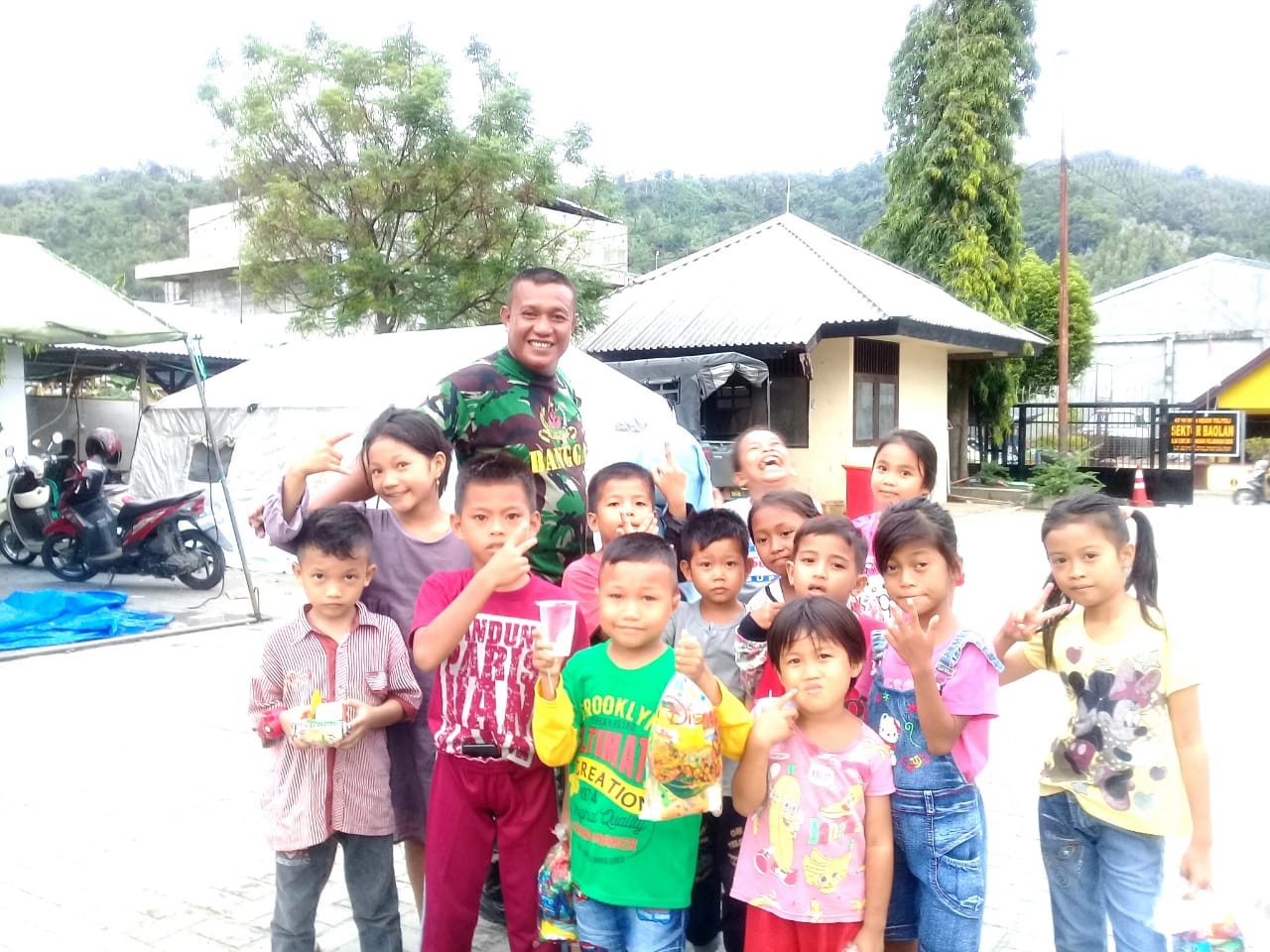 Tolitoli, Posrakyat.com- Guna menghilangkan rasa traumatis bagi para anak-anak korban kebakaran, berbagai cara telah dilakukan oleh seluruh pihak terkait, salah satunya seperti yang di lakukan oleh Babinsa Koramil 1305-01/Baolan Kodim 1305 Buol Tolitoli.