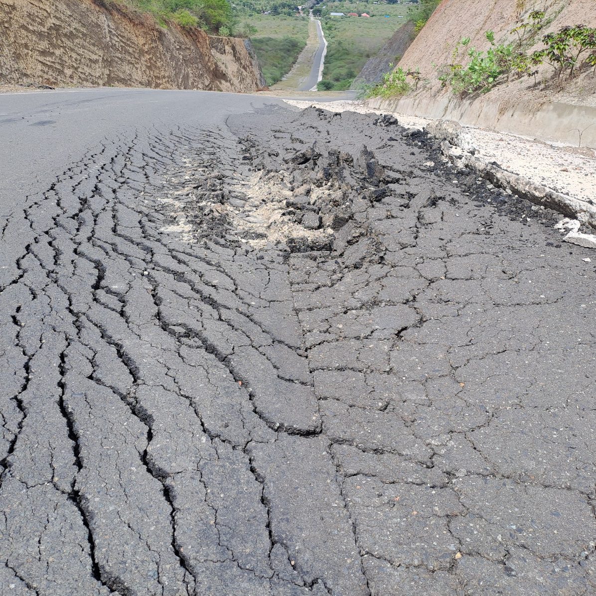 Sejumlah pihak menilai kerusakan ini diduga disebabkan oleh timbunan dasar jalan yang tidak padat, sehingga tidak mampu menahan beban lalu lintas dan mudah mengalami penurunan struktur.