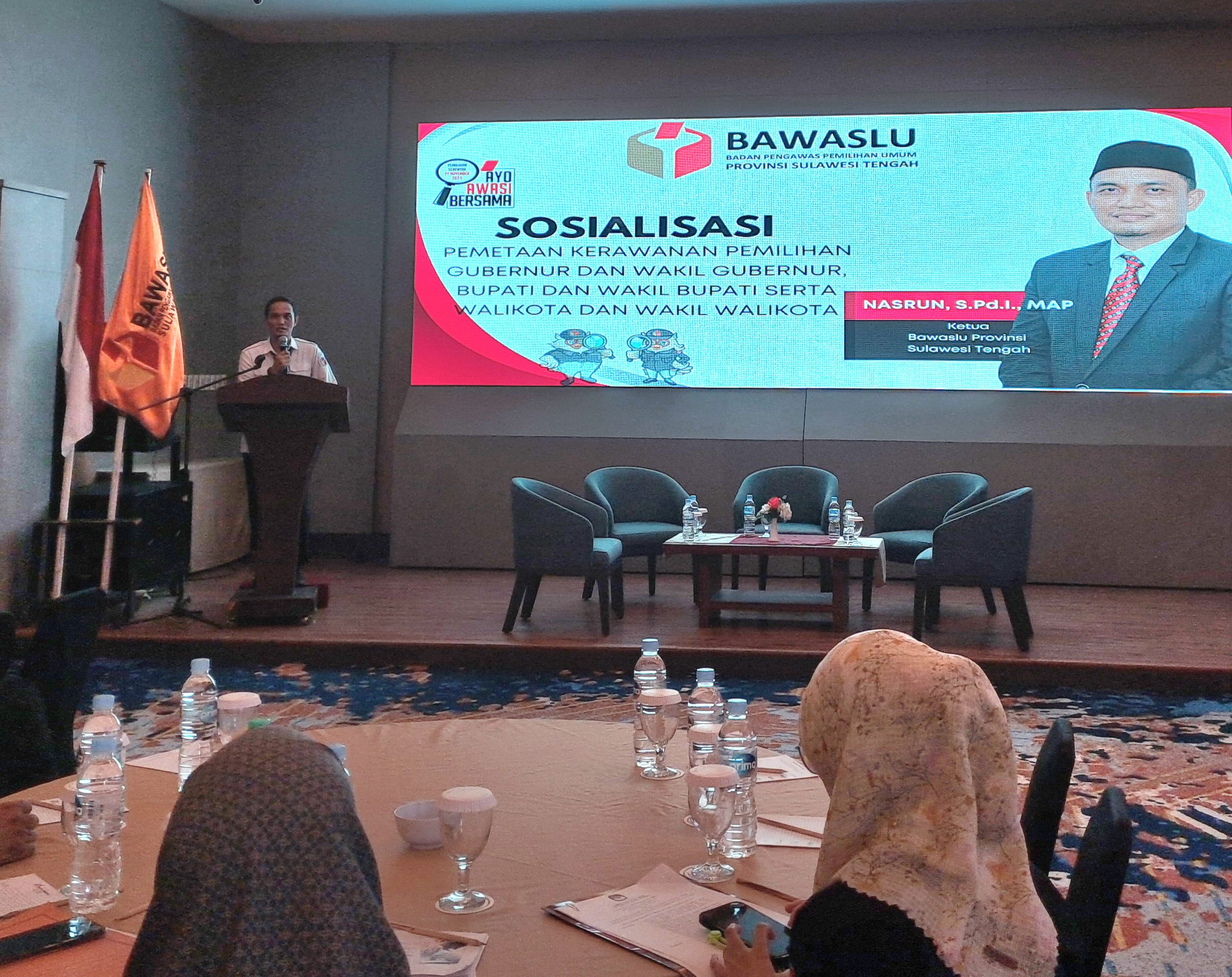 PosRakyat – Badan Pengawas Pemilihan Umum (Bawaslu) Sulawesi Tengah (Sulteng) menggelar sosialisasi pemetaan kerawanan pemilihan kepala daerah 2024, bertempat di Swiss Belhotel kota Palu, Rabu, 4 September 2024.