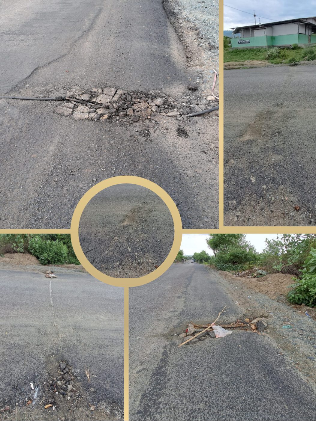 Menurut warga setempat, jalan tersebut baru sekira 13 hari lalu dikerjakan dengan menggunakan asphalt finisher, namun hari ini tampak sudah mengalami penurunan badan jalan dan sebagian lagi berlubang.