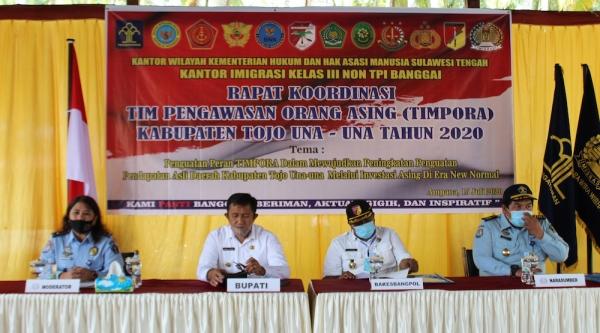 Touna, Posrakyat.com – Bupati Tojo Una-Una Mohammad Lahay, S.E., M.M hadiri Rapat Koordinasi Tim Pengawasan Orang Asing (TIMPORA) Kabupaten Tojo Una-Una Tahun 2020 Rabu (15/07/2020) bertempat di Marina Cottage,
