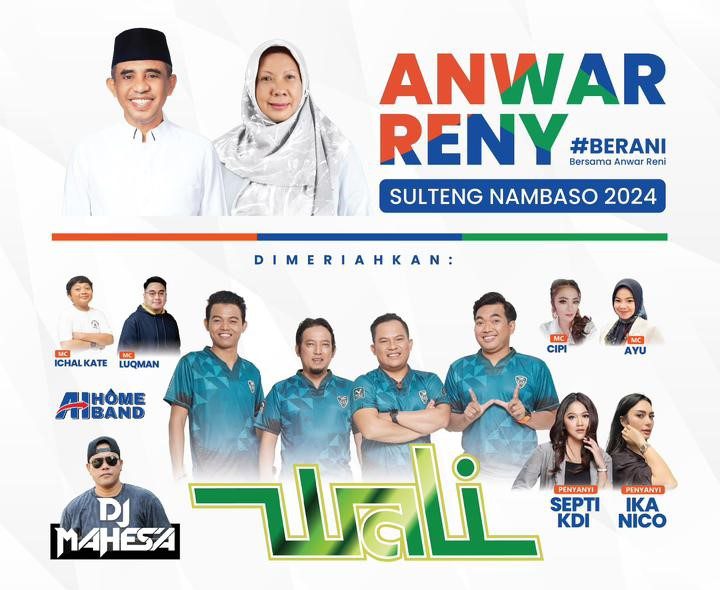 PosRakyat – Deklarasi dan temu masyarakat pasangan calon Gubernur dan Wakil Gubernur Sulawesi Tengah 2024, Dr. Anwar Hafid, M.Si, dan dr. Reny A. Lamadjido, M.Kes, akan digelar di Desa Taugi, Kecamatan Masama, Kabupaten Banggai, Kamis malam (19/9/2024). Acara ini dimulai pukul 19.30 WITA hingga selesai, dengan kehadiran grup band ternama, Wali, untuk menghibur warga.