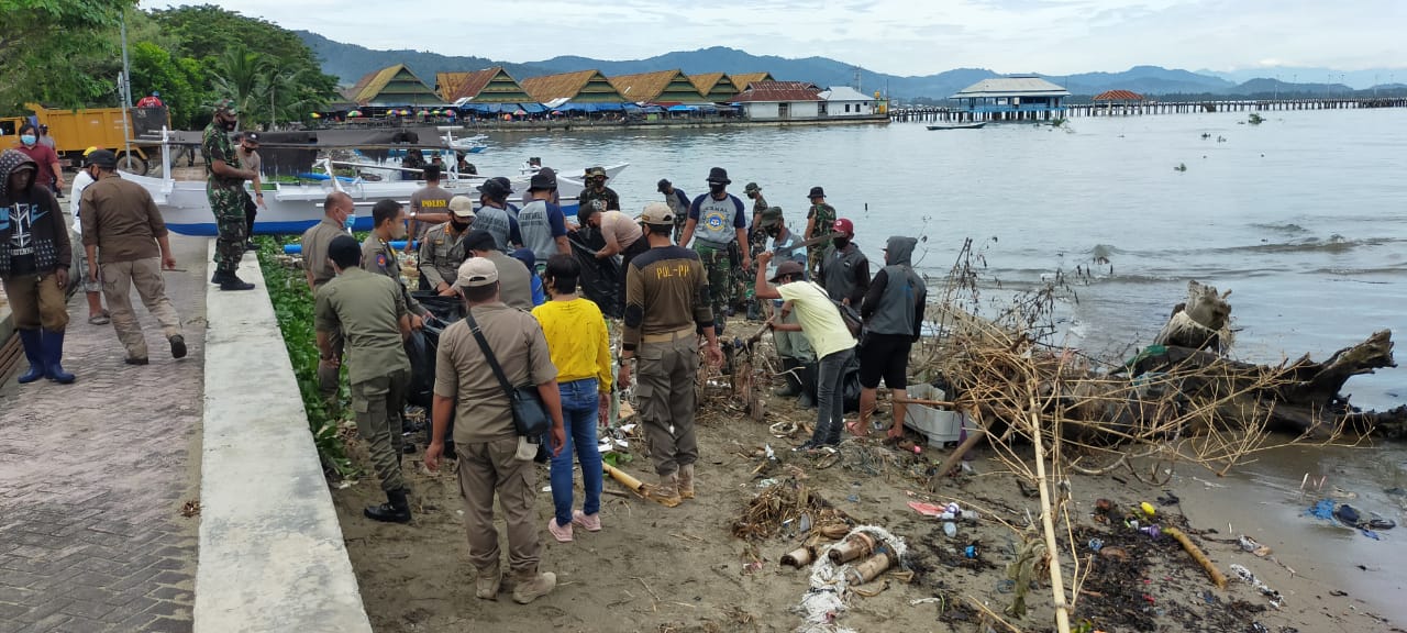 PosRakyat – Bau sampah busuk yang menyengat membuat TNI, Polri serta Sat Pol PP yang diinisiasi langsung Lanal Tolitoli dengan melakukan aksi pembersihan sampah disepanjang pantai Susumbolan Tolitoli, Sulawesi Tengah (Sulteng). Berbagai jenis sampah material diangkut menggunakan armada milik pemkab setempat.