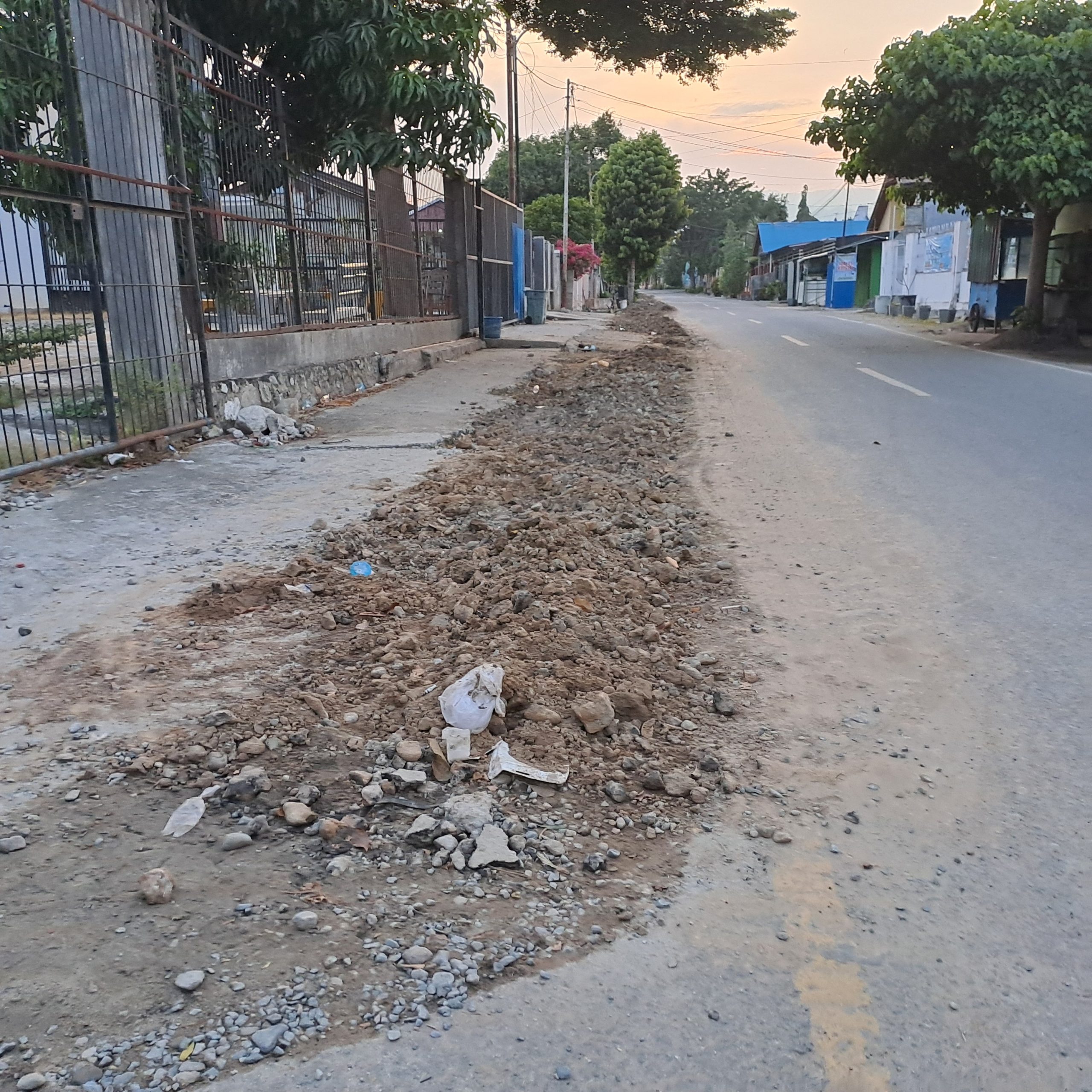 Galian pipa air itu membuat bahu jalan sepanjang Jalan Garuda mengalami ambles dan berlubang.bSedangkan di Jalan Nuri, gundukan tanah galian itu dibiarkan bertumpuk di sepanjang jalan tanpa dipadatkan kembali.