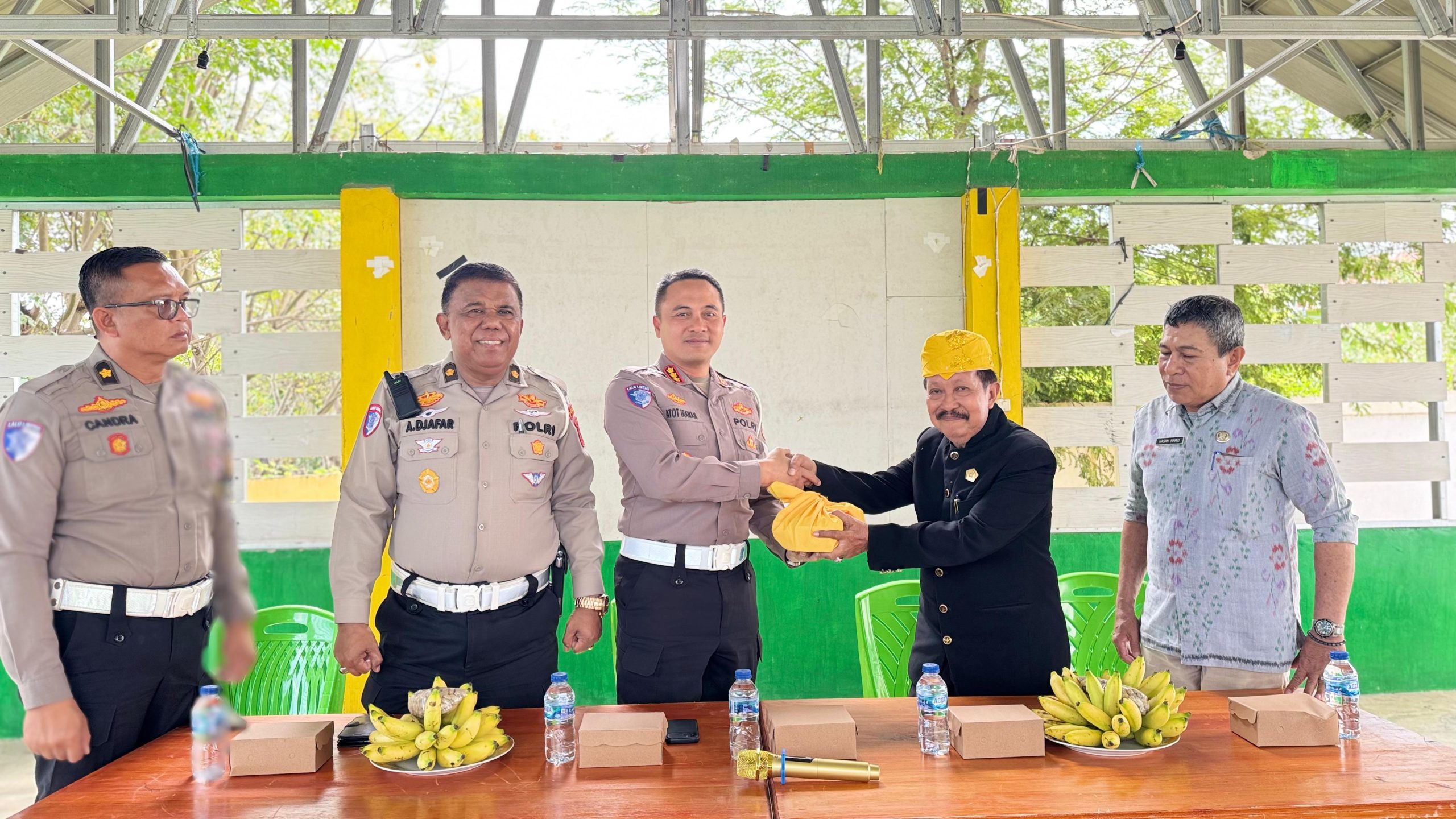 Kombes Pol. Atot Irawan memberikan apresiasi atas kerjasama yang diberikan pemerintah Kelurahan Talise Valangguni bersama lembaga adat untuk mendukung terciptanya Kawasan tertib berlalu lintas.