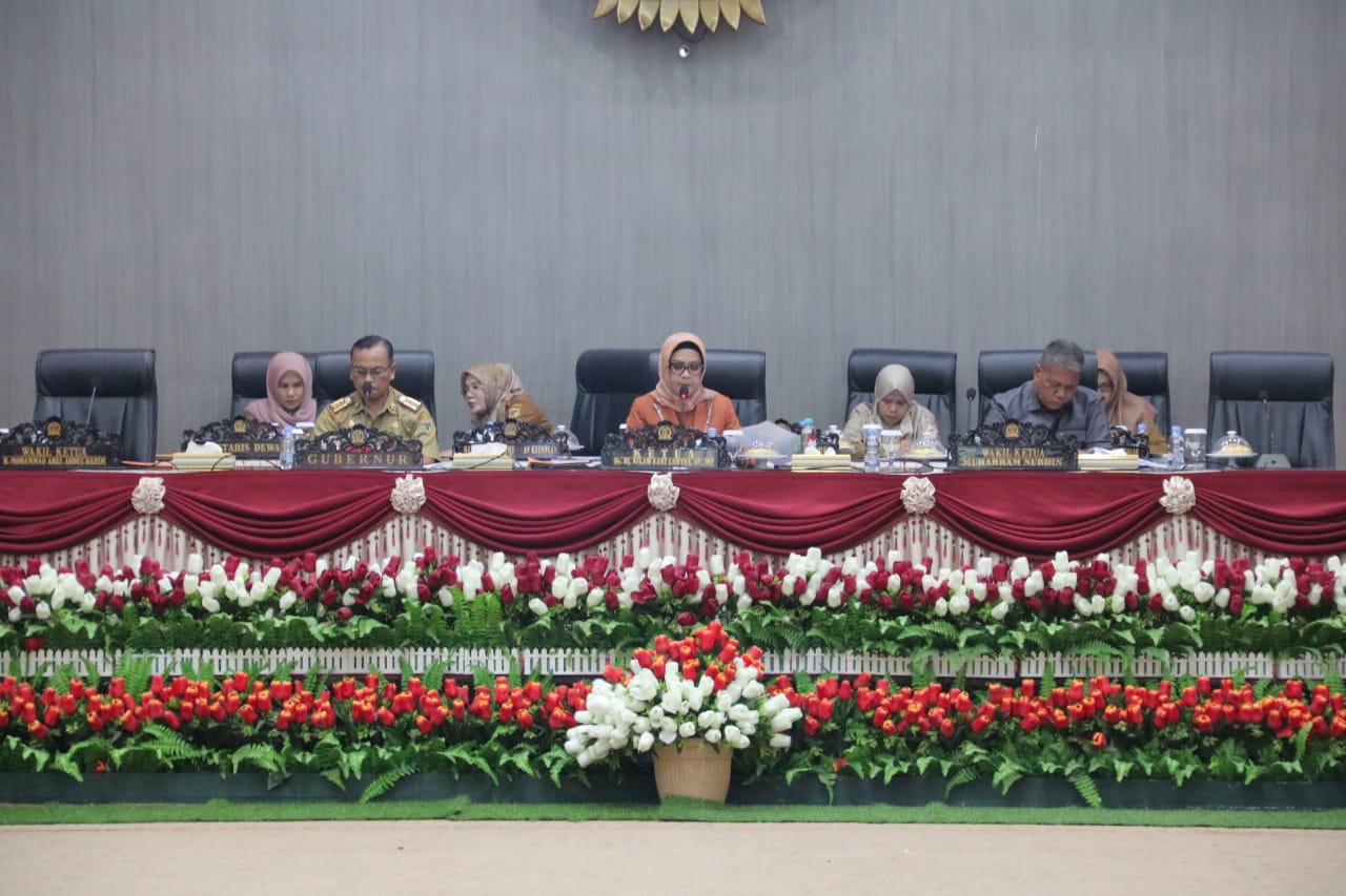Rapat paripurna diawali dengan penetapan tiga Raperda yakni Raperda tentang fasilitasi penyelenggaraan pesantren, Raperda tentang perubahan atas peraturan daerah nomor 8 Tahun 2016 tentang pembentukan dan susunan perangkat daerah provinsi dan Raperda tentang penyelenggaraan anak.