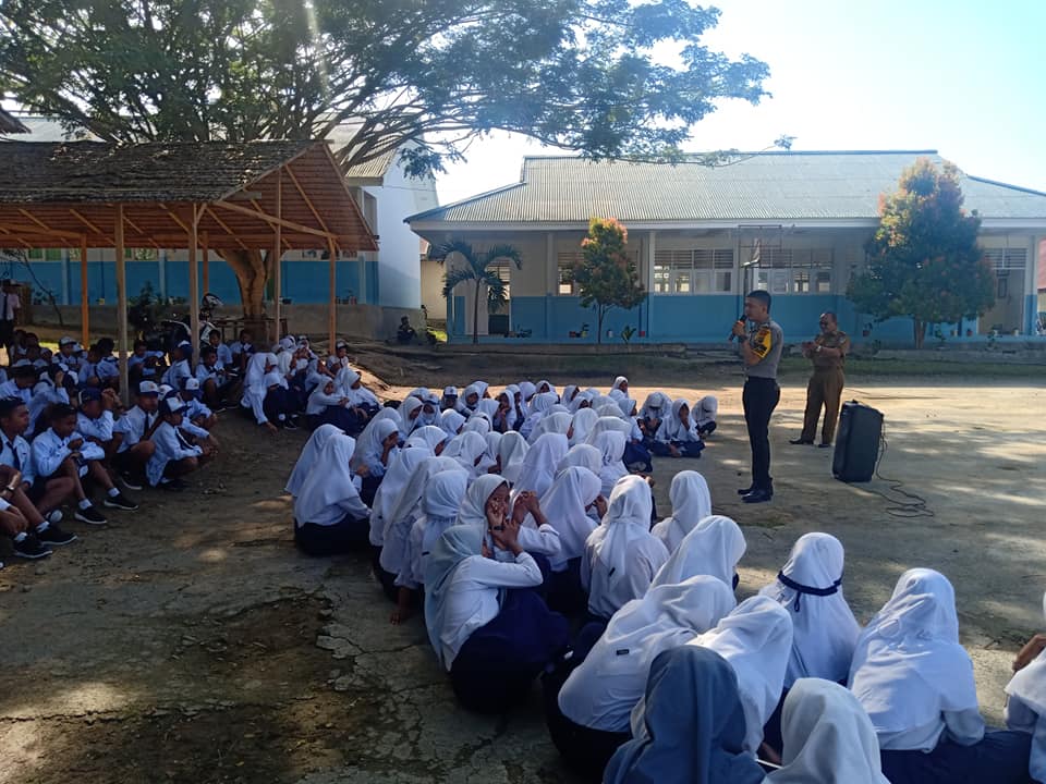 Polsek Labuan, Polres Donggala melaksanakan giat sosialisasi bahaya narkoba dan kenakalan remaja di sampaikan oleh Anggota Polsek Labuan Brigadir Ian Aditya. Foto: Istimewa