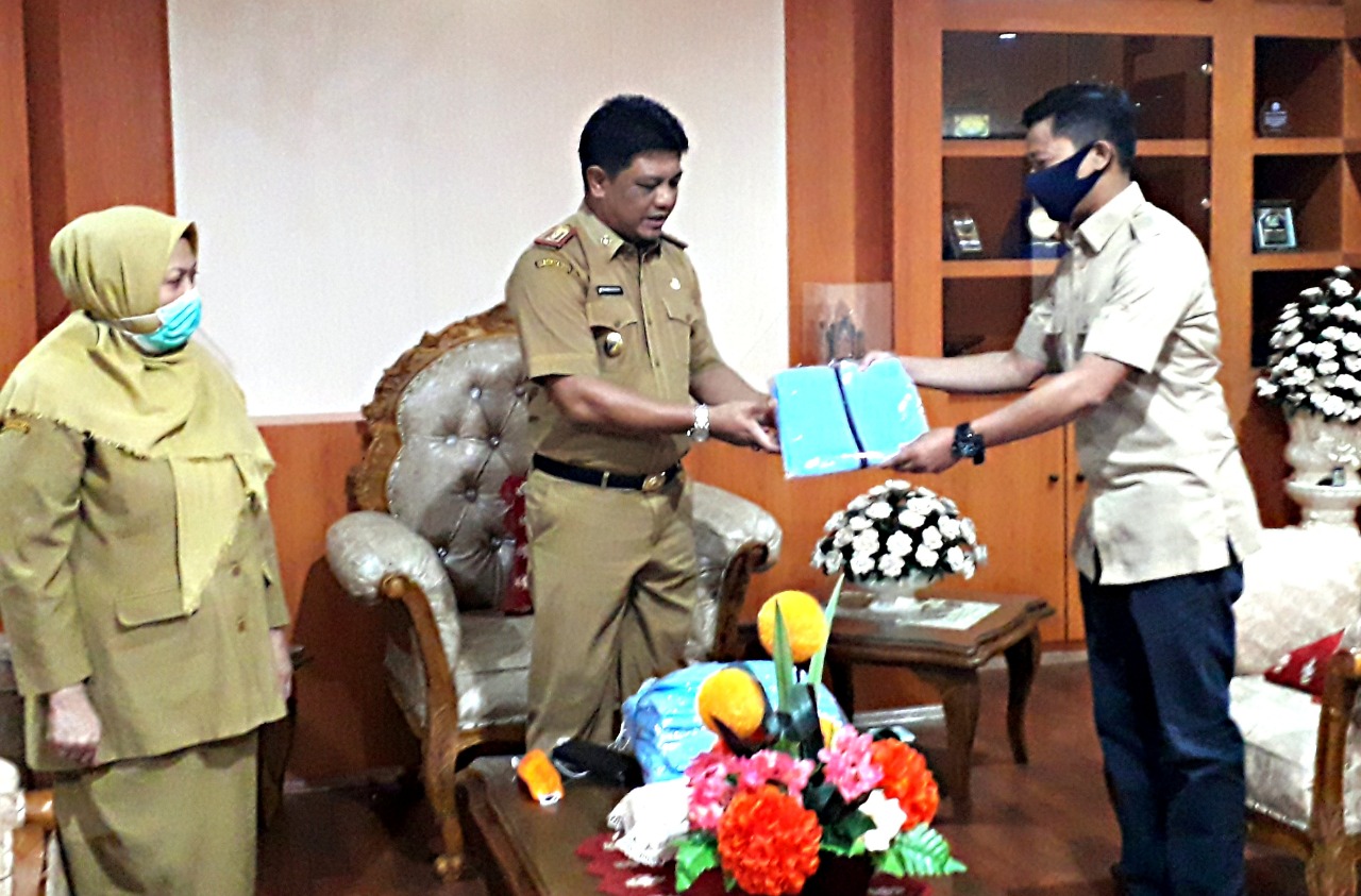 Penyerahan bantuan APD oleh Ketua Fraksi Gerindra Sulteng, Abdul Karim Aljufri kepada Sekdaprov, Mohammad Hidayat Lamakarate didampingi Kepala Dinkes Sulteng, Reny Lamadjido di ruang kerja Sekdoprov, Senin (4/5/2020). [FOTO: HUMAS PEMPROV]