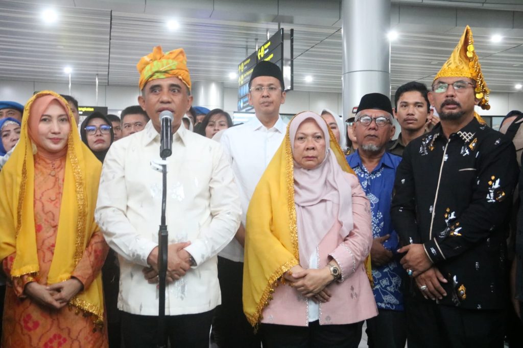 PosRakyat – Gubernur Sulawesi Tengah, Dr. H. Anwar Hafid, bersama Ketua TP PKK Sry Nirwanti Bahasoan Anwar dan Wakil Gubernur dr. Reny A. Lamadjido, Sp.PK., M.Kes, tiba di Palu setelah mengikuti Retreat Kepala Daerah selama delapan hari di Akademi Militer (Akmil) Magelang.