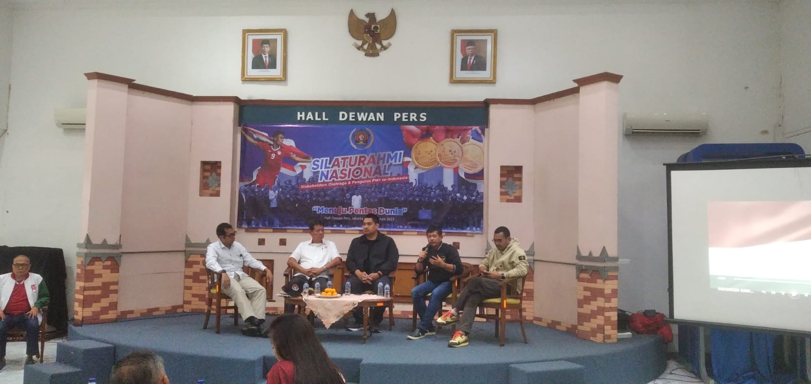 PosRakyat – Persatuan Wartawan Indonesia (PWI) Pusat menghadirkan Menteri Pemuda dan Olahraga (Menpora), Dito Bimo Ariotedjo serta pelatih sepakbola nasional Indra Sjafri dalam acara bertajuk Silaturahmi Nasional Menuju Pentas Dunia di Hall Dewan Pers.