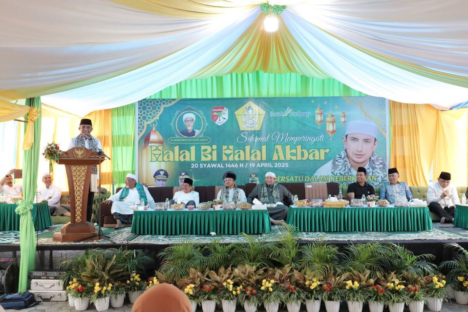 PosRakyat – Gubernur Sulawesi Tengah, Anwar Hafid, bersama Ketua TP-PKK Sulawesi Tengah Sry Nirwanti Bahasoan, menghadiri acara Halal Bi Halal Akbar 1446 H Komisariat Daerah Alkhairaat Kabupaten Tojo Una-Una (Touna), yang dirangkaikan dengan Haul Guru Tua, Sabtu (19/4/2025) di Masjid Ismaratul Ukhuwwah, Touna. Acara ini juga dihadiri langsung oleh Ketua Utama Alkhairaat, Habib Sayyid Alwi bin Saggaf Aljufri, Bupati Touna Ilham S.H., Wakil Bupati Surya S.Sos., M.Si., serta mantan Bupati Touna, Mohammad Lahay, dan disambut antusias oleh ribuan masyarakat dari berbagai penjuru Touna.