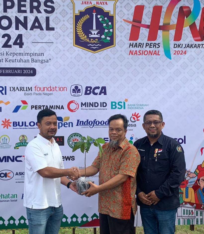 PosRakyat – Dalam rangkaian Hari Pers Nasional (HPN) 2024, Ketua PWI Sulteng Tri Putra Toana diwakili sekretaris PWI Temu Sutrisno didampingi Wakil Ketua Organisasi Fery eL Shirinja, secara simbolis menyerahkan pohon sebagai simbol penghijauan, kepada Direktur PT Pembangunan Jaya Ancol Tbk, Eddy Prastiyo, Ahad 18 Februari 2024 di lokasi HPN Taman impian Jaya Ancol Jakarta.