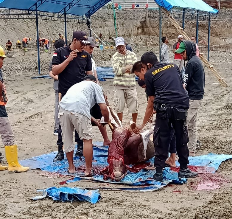 Palu, Posrakyat.com – PT Citra Nuansa Elok (CNE) selaku pengelola New Tatura Mall melakukan kegiatan qurban sapi sebanyak tiga ekor, Minggu (2/8/2020) pagi. Pemotongan ketiga ekor sapi tersebut dilakukan di dalam area pembangunan New Mall Tatura. Daging ketiga ekor sapi tersebut kemudian disalurkan ke puluhan warga kurang mampu di Kota Palu. Sebagian lainnya dibagikan kepada karyawan dan staff PT CNE.