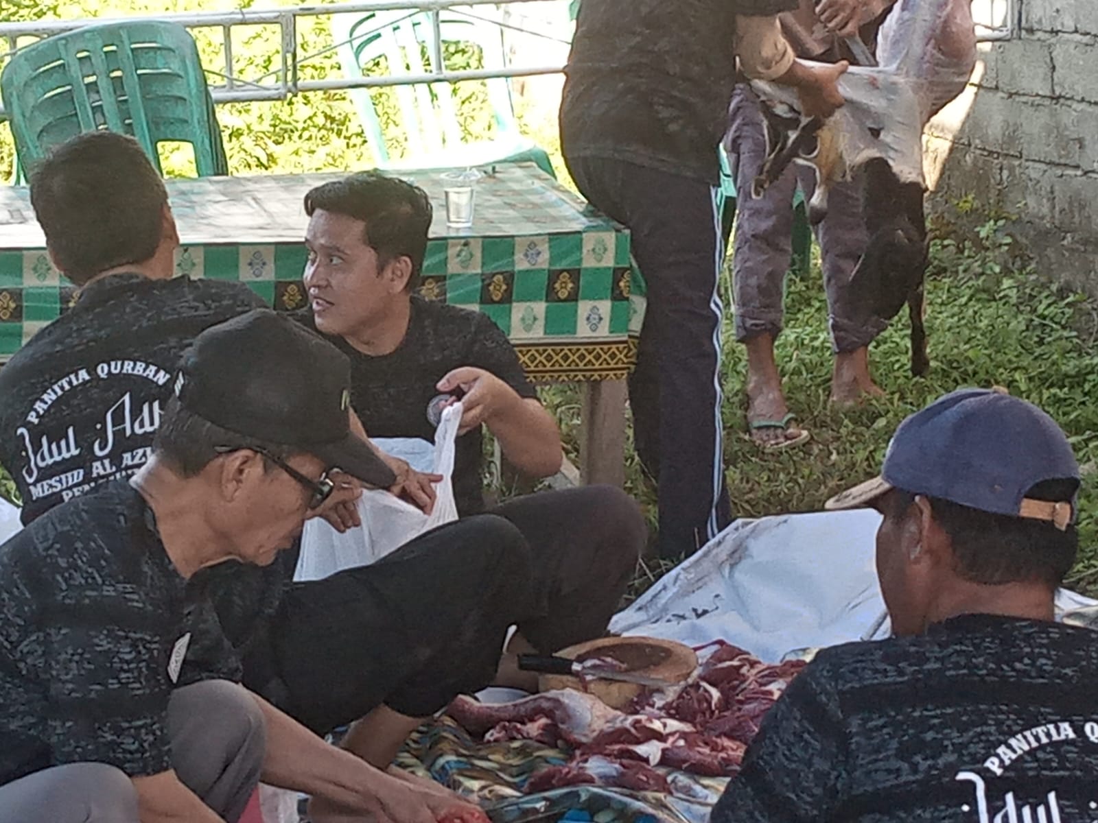 Penyembelihan hewan kurban pada Kamis, 29 Juni 2023, merupakan rutinitas yang setiap tahun dilakukan masyarakat di kompleks perumahan Pengawu Permai saat perayaan hari raya Idul Adha.