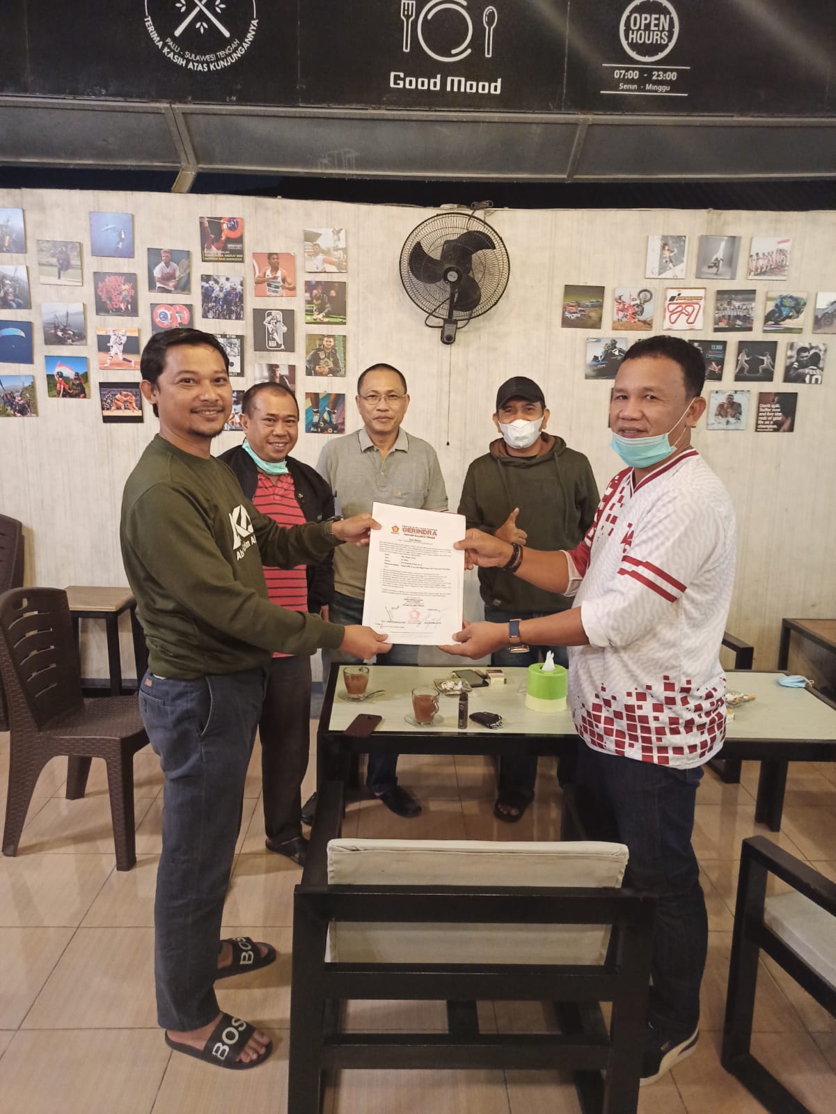 Penyerahan mandat oleh Sekertaris DPD Abdul Karim Aljufri mewakili Ketua DPD Gerindra Sulteng, Longki Djanggola disaksikan Wakil Ketua I DPD Gerindra, Stivan Helmi Sandagang, pengurus DPD Ridwan L. Hasan, dan sejumlah kadernya lainnya, Selasa 24 Agustus 2021 malam.