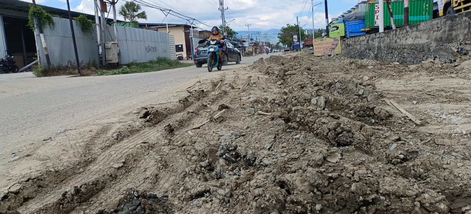 “Bahkan sebelumnya ada dum truck yang terperosok hingga rodanya tertanam bahu jalan. Sudah jelas membahayakan pengguna jalan cobalah sekalipun sepele itu kan sudah ada aturannya,” ujarnya.