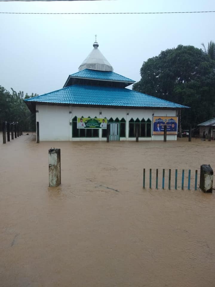 Selain itu satu jembatan papan rusak diterjang air yang menghanyutkan rumah warga, sejumlah fasilitas umum seperti masjid dan sekolah serta kantor Polsek juga terendam.