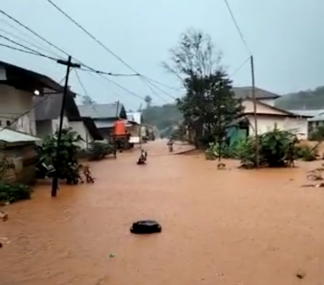Dari video itu, terlihat jelas banjir merendam rumah, jalan dan beberapa kendaraan yang melintas di jalan.