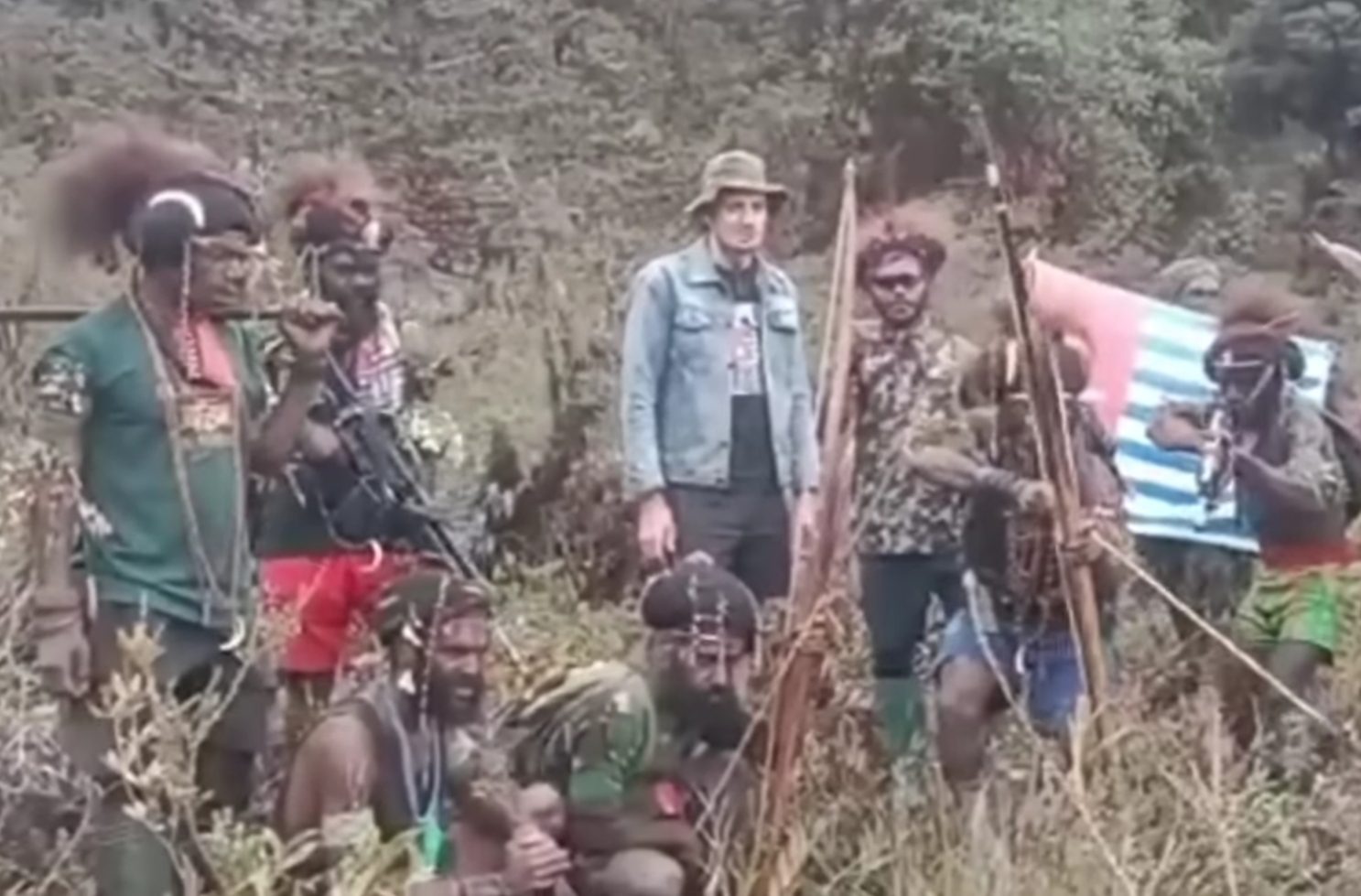 Terlihat KKB di Papua masih menyandera Pilot Susi Air Kapten Phillip Mark Mehrtens, Rabu, 15 Februari 2023. Foto: Tangkapan layar