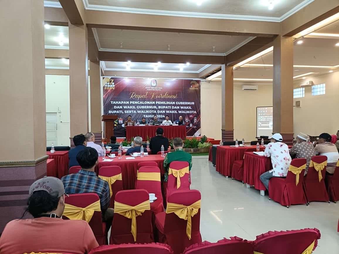 PosRakyat – Komisi Pemilihan Umum (KPU) Tolitoli pada Sabtu (10/8/2024) menggelar rapat koordinasi (Rakor) untuk persiapan tahapan pencalonan Pemilihan Bupati dan Wakil Bupati yang akan dilaksanakan pada 27 November 2024 mendatang.