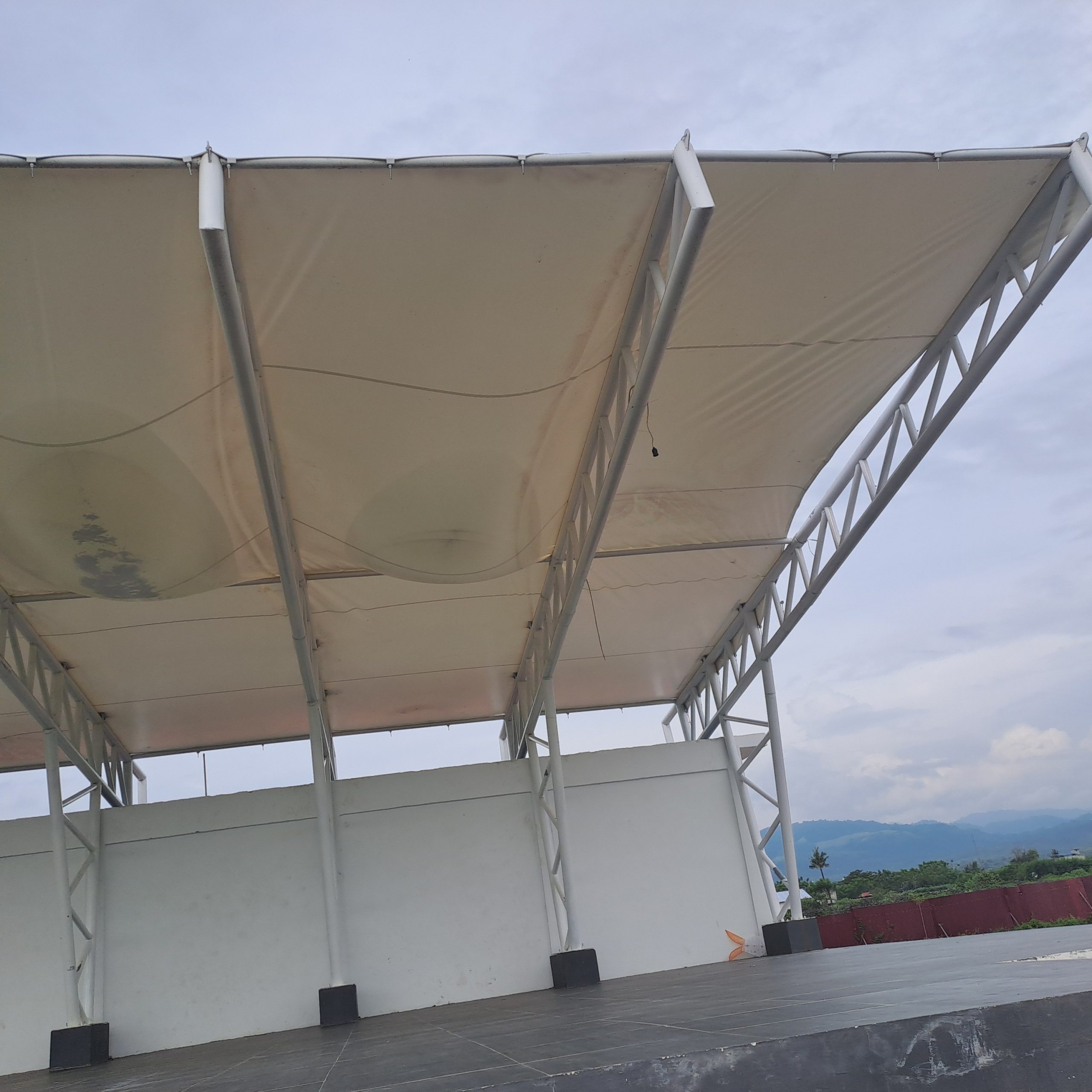 Genangan air pada tenda canopy membrane menyebabkan kerusakan pada tenda. Foto: ZF