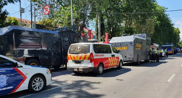 Palu, PosRakyat.com –Guna menekan penyebaran virus Covid-19, Polda Sulawesi Tengah (Sulteng) melakukan penyemprotan disinfektan secara serentak dengan mengerahkan lima unit Armoured Water Cannon (AWC), mobil Kimia Biologi dan Radioaktif (KBR) Satbrimob Polda Sulteng beserta mobil tangki Korem 132 Tadulako dan satu unit mobil pemadam kebakaran Pemkot Palu.