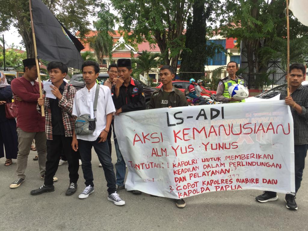 Dalam aksi itu, LS ADI melayangkan dua tuntutan yakni, meminta Kapolri untuk memberikan rasa keadilan dalam pemberian pelayanan dan perlindungan, serta meminta copot Kapolres Nabire dan Kapolda Papua.
