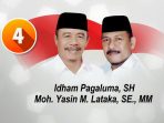 Idham Pagaluma-Mohammad Yasin Lataka. Pasangan yang disingkat IYAMO ini satu-satunya yang bertarung melalui jalur perseorangan dan nyaris gagal. Sebab dua kali mengalami TMS (tidak memenuhi syarat) dalam proses tahapan perbaikan syarat dukungan. Tetapi tim yang solid dan militant yang dimiliki IYAMO terus melakukan “perlawanan” dengan gugatan terhadap Komisi pemilihan Umum (KPU) melalui Panwas Kabupaten Donggala, akhirnya IYAMO kemudian dinyatakan menang. Secara otomatis dilakukan penetapan nomor urut keempat menyesuaikan tiga pasangan yang lebih awal ditetapkan.