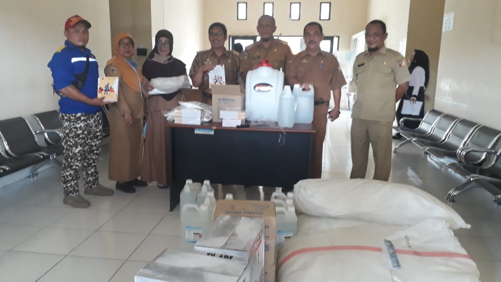 Adapun jenis bantuan yang diserahkan adalah, 250 stel Alat Pelindung Diri (APD), sebanyak 11 Jerigen cairan Disinfektan berukuran 5 Liter, 3 Unit Alat Semprot Disinfektan (Seiko), 41 Box sarung tangan medis (Golden Gloves), dan buku sosialisasi Covid-19 125 Pcs. [Jefry]