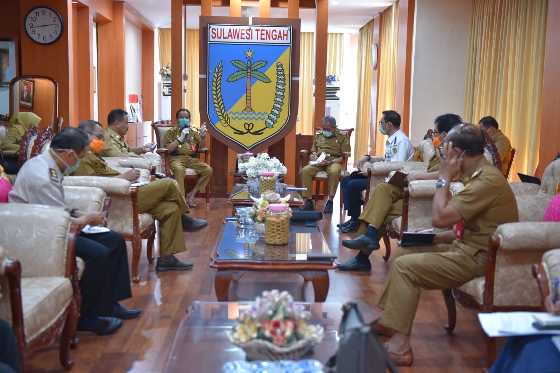 Palu, PosRakyat.com – Gubernur Sulawesi Tengah, Longki Djanggola memimpin rapat pelaksanaan kebijakan tentang pencegahan dan antisipasi penyebaran Virus Corona atau Coronavirus Disease (Covid -19) di Sulteng di ruang kerja gubernur, Senin (23/3/2020).