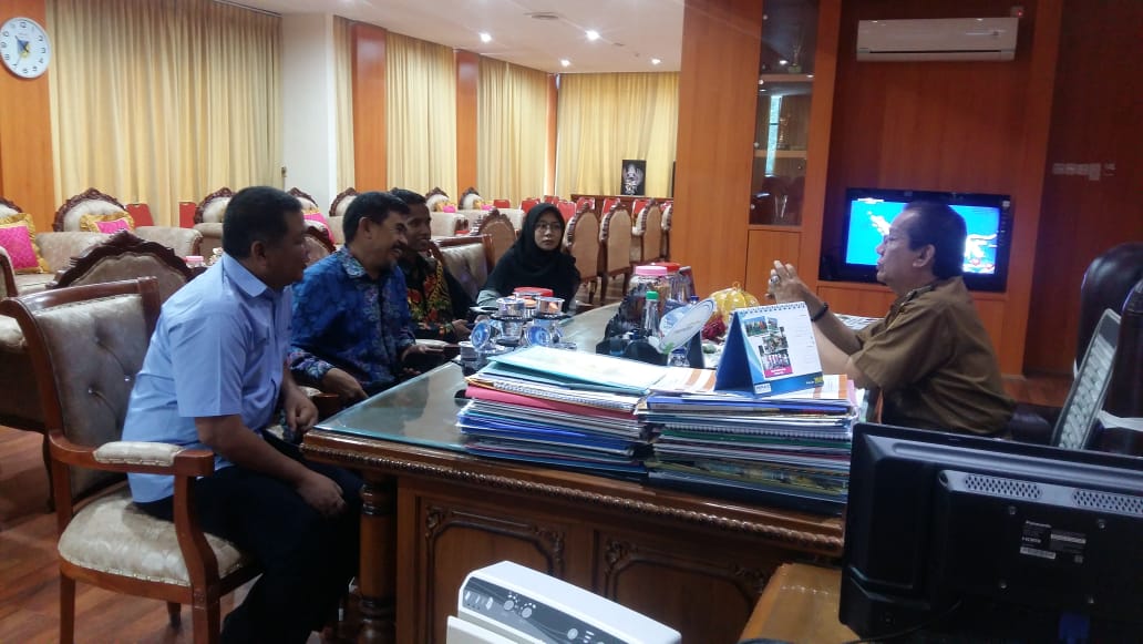 Gubernur Sulteng, Longki Djanggola menerima audiens perwakilan perusahaan Liwani Mirai Ltd, Fatoni yang didampingi Torki Tura, Parman, dan rekannya di ruang kerja gubernur, Senin (2/3/2020). [Foto: Bob]