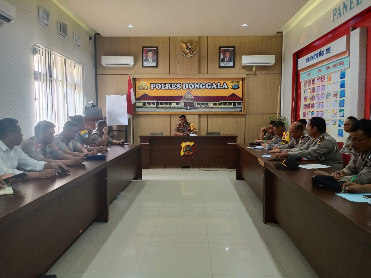 Donggala, Posrakyat.com – Polres Donggala Sulawesi Tengah, Senin 29 Juli 2019 pukul 08.40 Wita, bertempat di aula Rupatama Polres Donggala melaksanakan Analisa dan Evaluasi mingguan (anev).