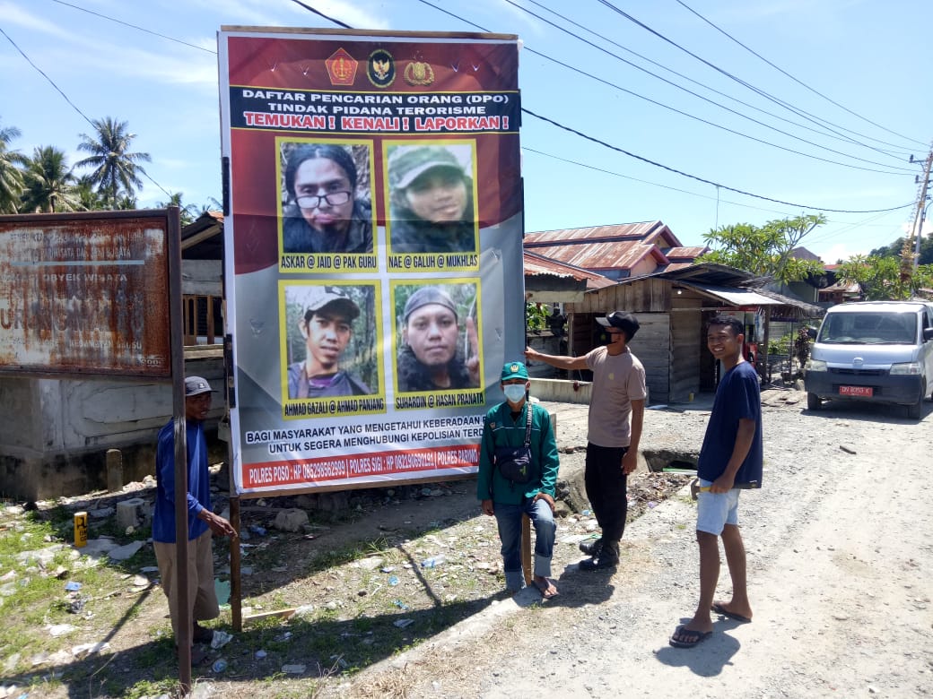 Dipimpin Kapolsek di kedua wilayah tersebut, baliho besar bergambar empat DPO teroris Poso nampak dipajang di sudut-sudut jalan desa.