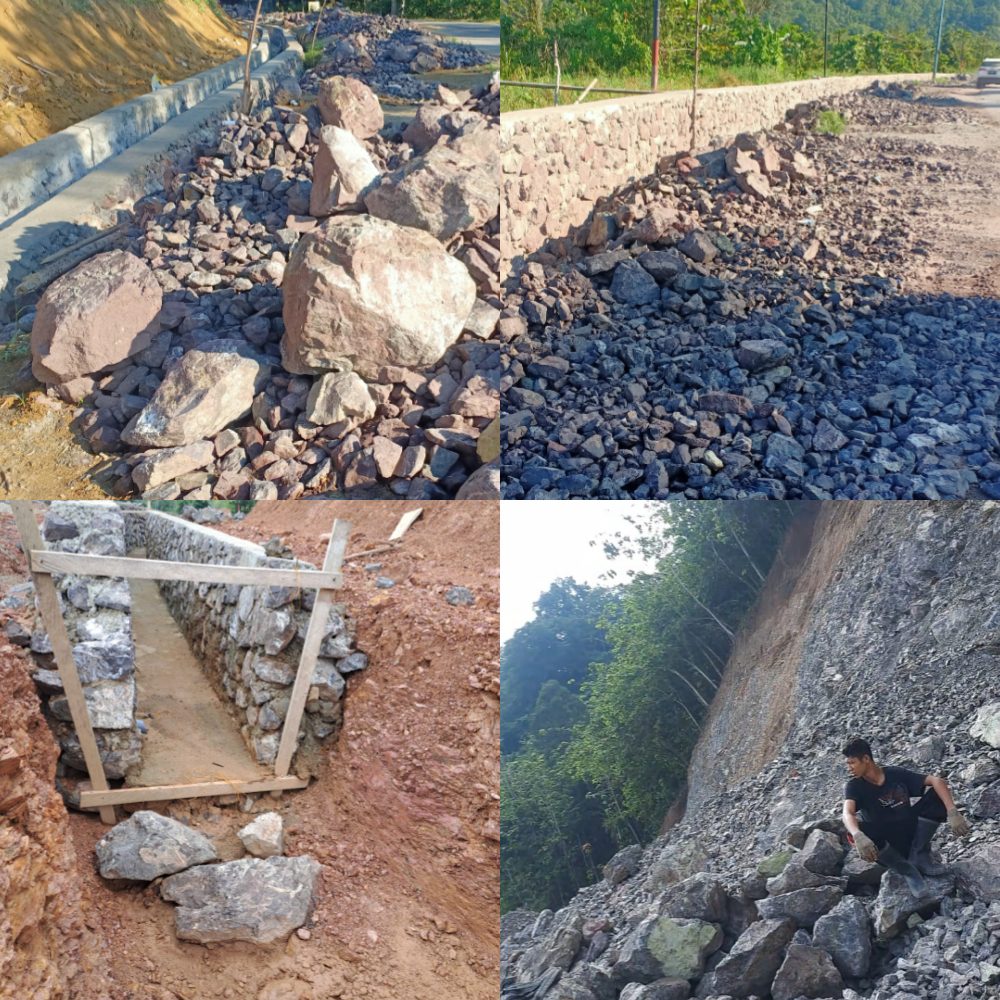 Warga lainnya juga mengatakan, bahwa hampir semua susunan batu mortar di ruas itu gunakan material batu bersumber dari bekas cuttingan pelebaran jalan.