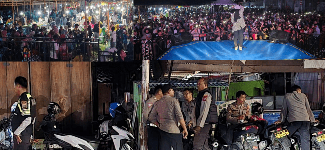 PosRakyat – Puluhan personil gabungan Polres Palu dan Polda Sulteng terus melakukan pengamanan di acara hiburan rakyat UMKM Berani (Bersama Anwar – Reni/y), di lapangan flayover jembatan Lalove Palu, Minggu malam, (9/9/2024).