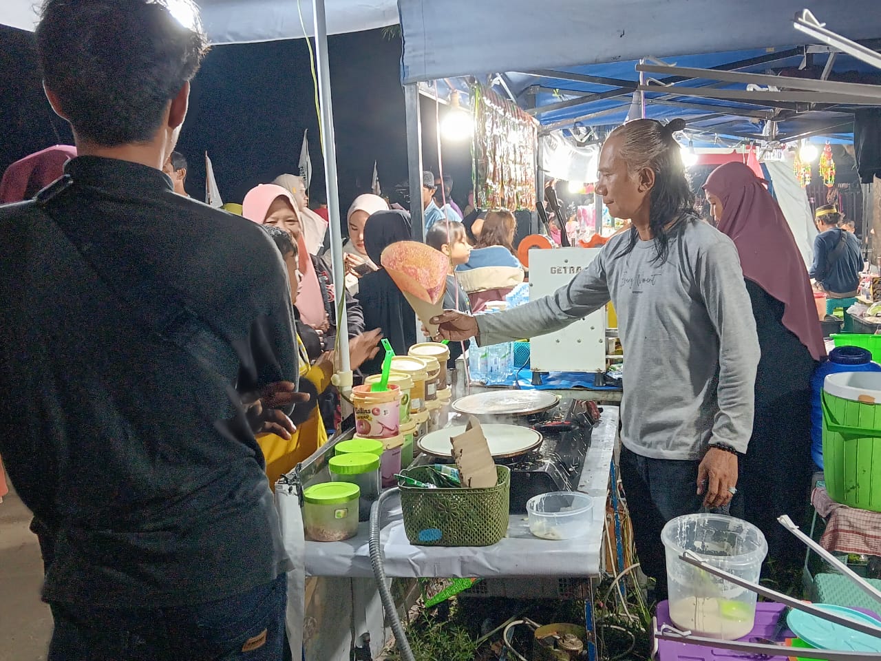 Selain penjual makanan, pedagang mainan anak-anak juga berpartisipasi, menawarkan berbagai barang seperti boneka, mainan pistol, dan ayam warna-warni. Mainan ini menjadi daya tarik khusus bagi orang tua yang membawa buah hati mereka.