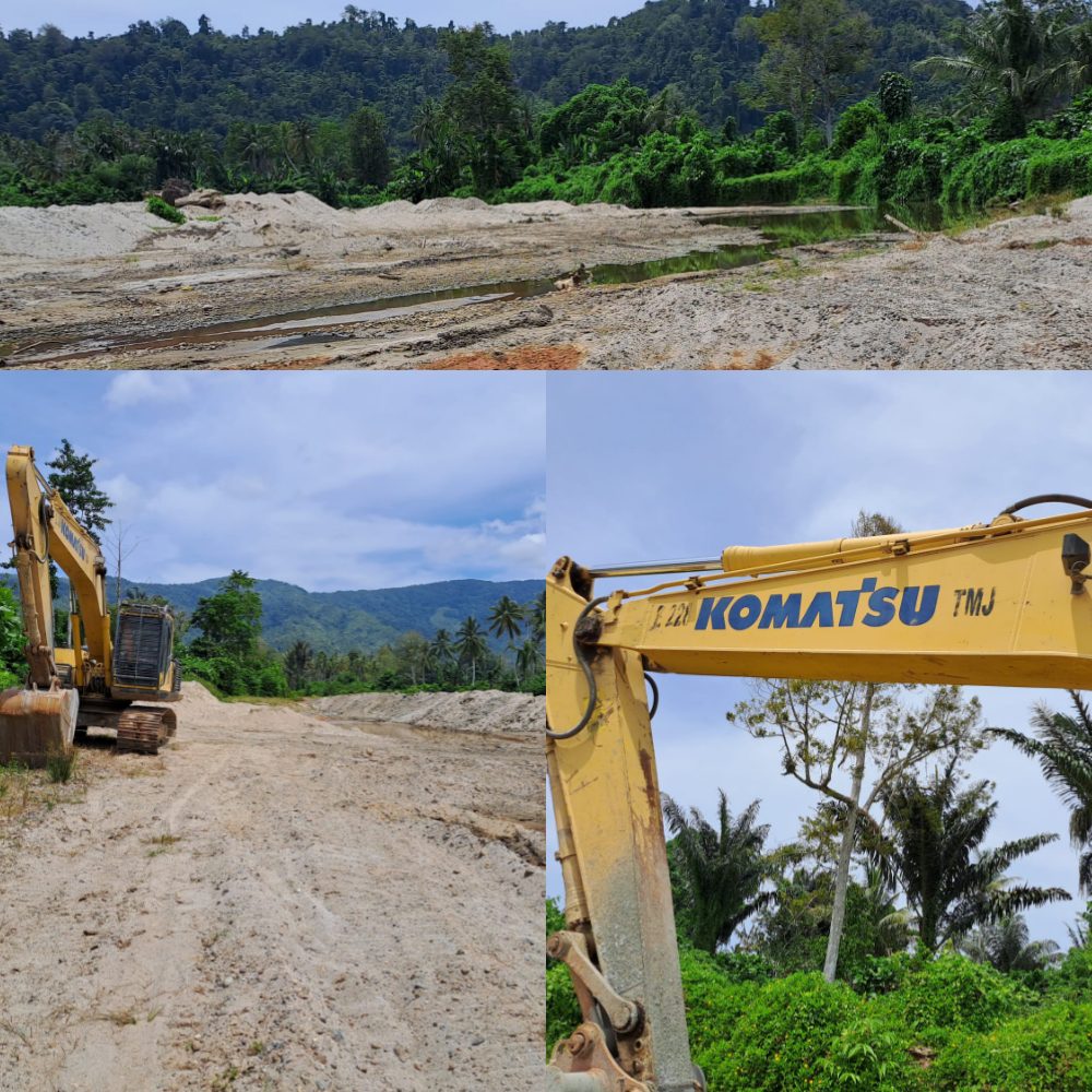 Penelusuran tim media ini Rabu kemarin, tampak akses masuk di lokasi pengambilan material telah ditutup, namun terlihat dalam lokasi itu masih ada alat satu unit ekscavator diduga milik dari PT TMJ.