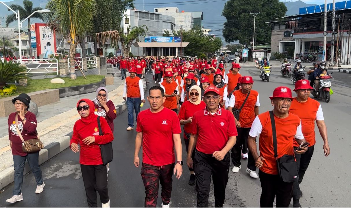 Ribuan peserta alumni FH Untad yang mengikuti acara jalan santai, dilanjutkan dengan line dance, zumba dan lomba karaoke.