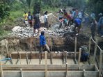 Tampak lokasi pekerjaan fisik pembangunan Deker Plat Bentangan 1m x 5m. dengan hasil progresnya sudah Masuk 8.%, salah satu sasaran fisik TMMD Kodim 1305/BT. ( buol – Tolitoli.) bersama warga terus bahu-membahu untuk mengangkat bahan material pengerjaan jembatan.tersebut.
