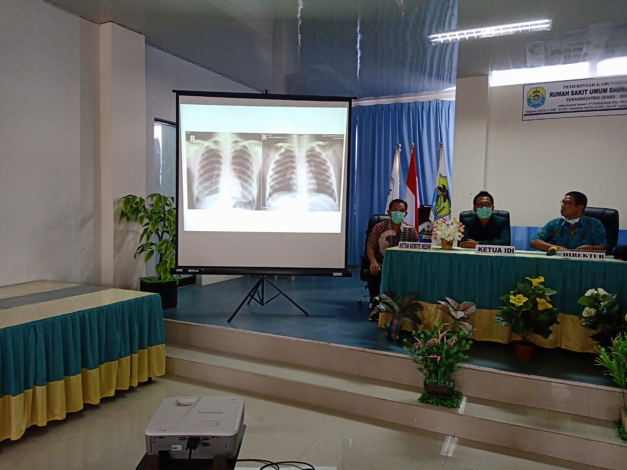 Sementara Sekretaris IDI Cab Tolitoli dr. Faisal YK, Sp.Rad, mengungkapkan bahwa, setelah dilakukan pemeriksaan radiologi, pasien mengalami bintik-bintik di kedua paru paru, setelah sehari di rawat, setelah pemeriksaan dengan menggunakan Citscan, ada kabur dan bercak bercak di paru paru, yang biasa di sebut pnemonia.