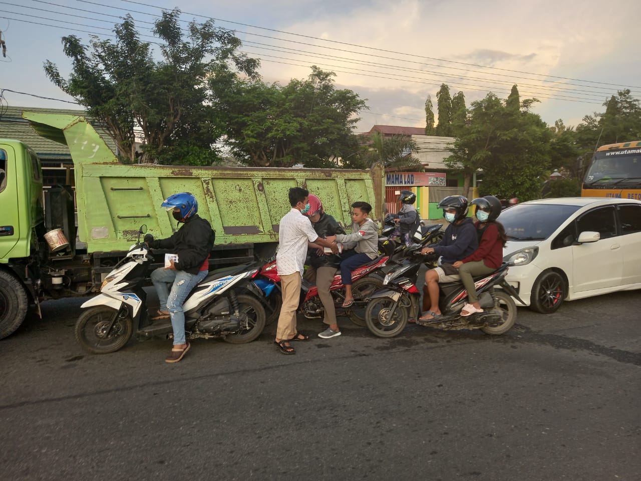 Titik pembagian takjil kali ini di simpang empat lampu merah jalan Veteran – Juanda – Sisingamangaraja – Mohamad Yamin. Pembagian takjil oleh puluhan kader Gerindra Sulteng menyasar masyarakat pengendara yang melintas di simpang empat tersebut.