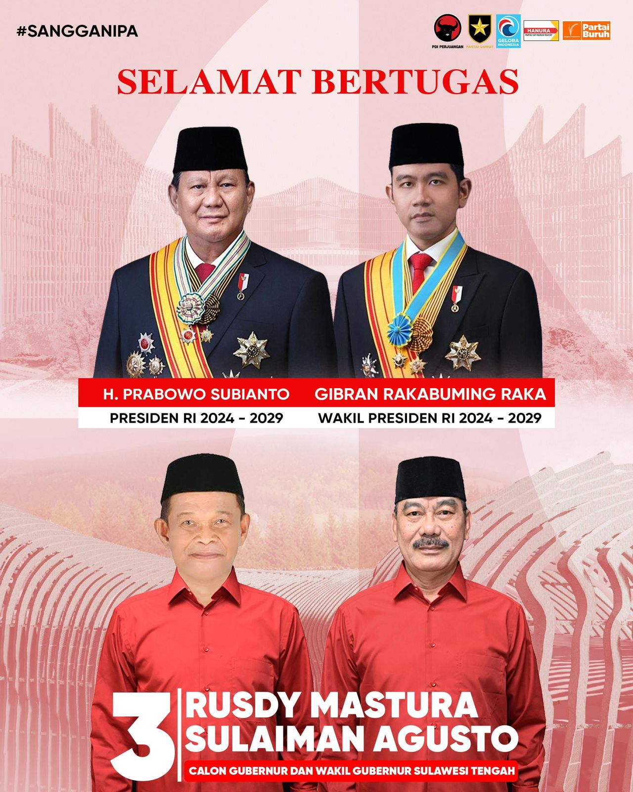 PosRakyat – Pasangan calon gubernur – wakil gubernur Sulawesi Tengah, H Rusdy Mastura dan Mayjen (Purn) Sulaiman Agusto sangat mengapresiasi pernyataan Presiden RI Prabowo Subianto akan anti korupsi, swadaya pangan, mempercepat pengurangan kemiskinan, dan memberikan makanan gratis kepada anak – anak sekolah.