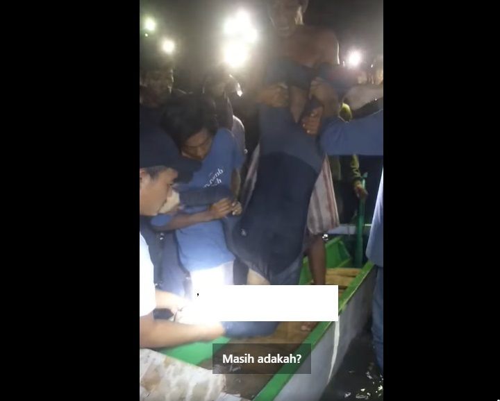 Dalam unggahan tersebut tampak korban sudah tergeletak dan dievakuasi oleh warga ke perahu dengan luka yang cukup parah di bagian kepala.