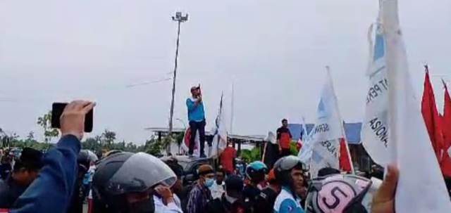 PosRakyat – Aliansi Serikat Pekerja / Serikat Buruh (Aspirasi) menggelar unjuk rasa di depan rumah jabatan (Rujab) Bupati Morowali di desa Matansala, kecamatan Bungku Tengah, kabupaten Morowali, Sulawesi Tengah (Sulteng).