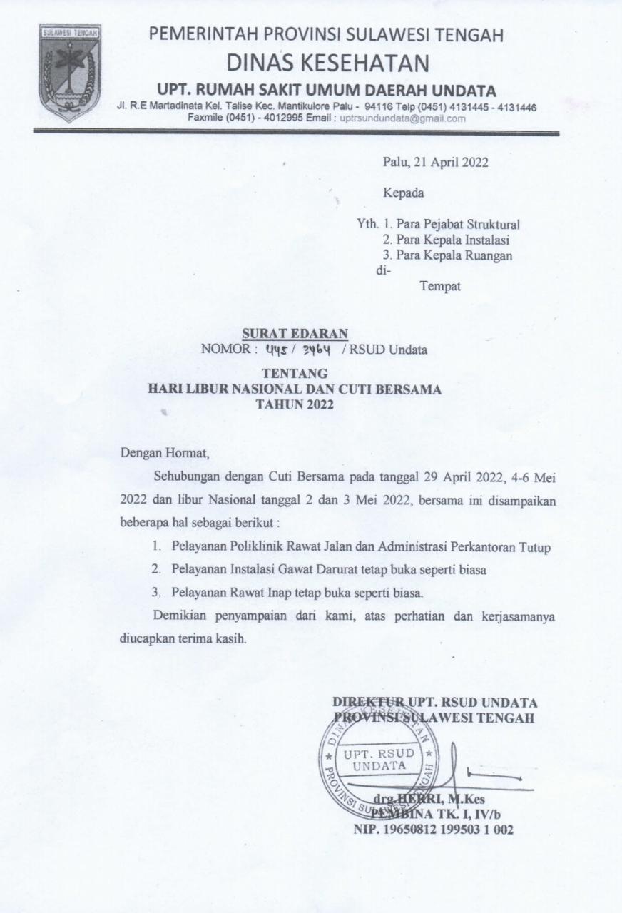 PosRakyat – Kebijakan manajemen Rumah Sakit (RS) Undata Palu melalui Direktur drg. Herri mendapat tanggapan beragam dari sejumlah pegawai honor, lantaran beredar kabar bahwa kebijakan yang dikeluarkan melalui Surat Edaran (SR) Nomor 445/3464/RUSD Undata.