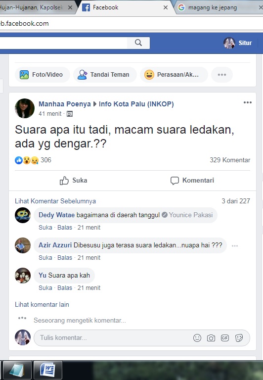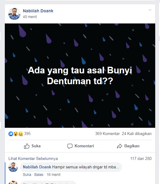 Posrakyat.com mencoba mengkonfirmasi ke pihak-pihak terkait namun belum tembus. Hingga berita ini diturunkan belum diketahui pasti suara apa yang membuat warga Palu geger itu.